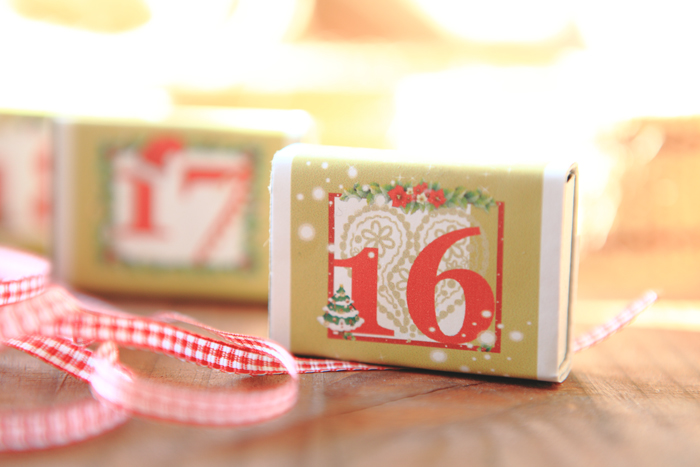 Listopad zdaje się być w tym roku dla nas łaskawy. Nie ma mrozu, nie ma śniegu, nie ma przeszywającego ziąbu. Budzę się rano, w kominku drwa skrzą się radośnie, płomienie tańczą za szybą… przyjemne ciepło wita w salonie. Opatulona w pled wypijam pierwszą kawę, planuję dzień…I to moje jedyne spokojne chwile, potem zaczyna się przysłowiowe urwanie głowy.Współczesne kobiety jawią się niczym heroiczne stwory – mamy tyle na głowach, że chyba jedynie Stwórca wie, jak dajemy radę – a przecież dajemy:) W każdym bądź razie, przestałam już snuć mrzonki o wolnych popołudniach, leniwych porankach czy błogich wieczorach. Wyrywam jedynie małe chwilki – jak te poranne, a dalej po prostu wio:) Mam to szczęście, że bardzo lubię moje „WIO”. Lubię swoją pracę. Sprawia mi tyle satysfakcji, że mogłabym nią obdarować z pół tuzina ludzi. I bardzo doceniam taki stan rzeczy. W ramach doceniania a tym samym dobrego nastroju wykonałam w wolnej chwili KALENDARZ ADWENTOWY. Specjalnie wcześniej – byście mogli być może zainspirować się samą ideą pudełkową i zrobić podobny. Pudełka do zapałek, jakkolwiek głupio to może zabrzmieć, wywołują we mnie sentymentalne odruchy. Owe zapałeczki schludnie ułożone w tekturowych schowkach zdają mi się być symbolicznym bastionem pamięci o przeszłości. Z grafikami na przedzie, często jakby żywcem wyjętymi z lat 60/tych, rozczulają mnie po prostu:) To dlatego mamy w domu sterty zapałek i nimi rozpalamy kominek, a nie zapalniczkami czy innymi cudami techniki. U moich dziadków zawsze leżały na półeczce przy kuchni kaflowej, u nas także mają swoje miejsce. Pomysł na zrobienie kalendarza właśnie z nich to nie moja inicjatywa – widziałam już dawno temu takie właśnie ich wykorzystanie. Ja jedynie wymyśliłam sobie, że chcę by nasz kalendarz był duży, by nawiązywał do mobili i koniecznie wisiał nad ławą. Tam bowiem zimą spędzamy sporo czasu i fajnie będzie mieć wieczorny rytuał czytania codziennych świątecznych opowieści. Bo tak właśnie widzę funkcję naszego kalendarza: w pudełeczku owszem łakoć dla Leo, ale przede wszystkim krótka świąteczna opowiastka:) Jak się domyślacie, sama je wszystkie napiszę. Ale wróćmy do tego jak go zrobić czyli nasze KROK PO KROKU:) Dziś nie będę Wam opisywała w punktach całej pracy, bo byłoby to barbarzyństwo:). Zabrałabym Wam całą radość kreowania swojego dzieła. Napiszę więc tylko – o idei wiankowego wisiołka:) i pokażę materiały z których skorzystałam. Częstujcie się zatem czym tylko dusza zapragnie.